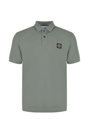 Polo Stone Island realizzata in piquet di cotone Salvia. Maniche corte. Colletto a camicia a costine. Chiusura a due bottoni. Patch con logo " Stone Island" sul petto a contrasto. 95% cotone 5% elastene