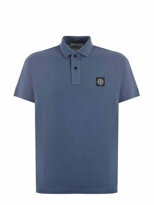 Polo Stone Island in piquet di cotone stretch Blu avion. Collo classico. Maniche corte. Patch logo " Stone Island" applicato sul petto. Chiusura con due bottoni. Spacchetti ai lati. Slim fit. Misura in foto M95% Cotone, 5% Elastan