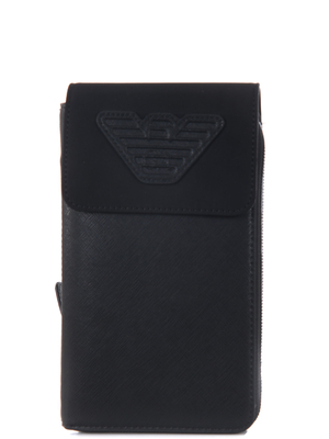 Porta cellulare Emporio Armani in saffiano Nero. Tracolla in ecopelle regolabile. Patta con chiusura a calamita e logo "eagle". Chiusura con zip intorno. All'interno scomparto per smartphone, tasche per carte di credito e documenti. Misure: altezza 19 cm, larghezza 12 cm, profondità 2 cm.100% poliuretano