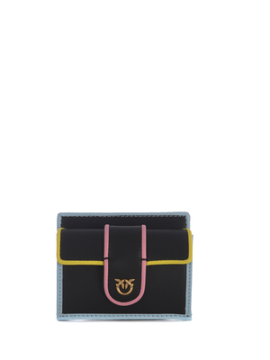 Portacarte Pinko "Card Holder" realizzato in pelle di colore Nero. Profili Multicolor. Chiusura con patta. Logo "Love Birds Diamond Cut" in metallo Dorato. Scomparti portacarte. Tracolla in catena, rimovibile. 100% Pelle