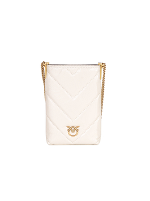Portacellulare Pinko realizzato in misto pelle di colore Crema.Tasca posteriore. Logo Love Birds di colore Dorato sul davanti.Tracolla di colore Dorato.Altezza: 17 cmLarghezza: 3 cmLunghezza: 12 cm100% pelle