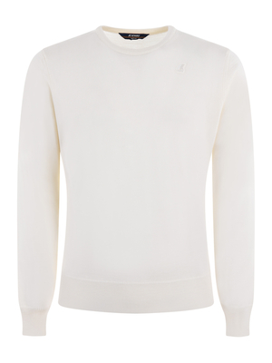 Pullover K-Way in lana vergine Bianco latte. Girocollo. Maniche lunghe. Polsi e fondo a costine. Logo gommato applicato sul petto in tono. Regular fit. Misura in foto M100% lana vergine