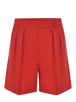 Short 'S Max Mara " Jessica" realizzato in tela di lana di colore Rosso. Silhouette svasata. Doppia pices davanti. Tasche laterali. Chiusura con zip e gancio. Tasche a filo sul retro. Fodera 95% Acetato, 5% Elastan 100% Lana Vergine Made in Italy