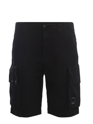 Shorts cargo C.P. Company realizzati in cotone stretch Nero. Tasche america laterali. Tasconi cargo con bottoni a pressione e goggle lens. Tasca a filo con bottone automatico sul retro. Chiusura con zip e bottone. 97% Cotone, 3% Elastene