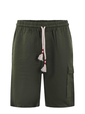 Shorts MC2 Saint Barth in lino Verde militare. Elastico in vita con coulisse. Tasche america. Tasche con pattina sul retro e tascone cargo sulla gamba sinistra. Patch logo sul retro. Misura in foto M100% lino