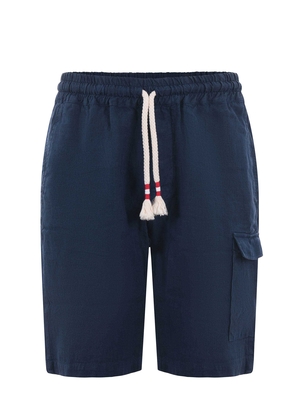 Shorts MC2 Saint Barth in lino Blu scuro. Elastico in vita con coulisse. Tasche america. Tasche con pattina sul retro e tascone cargo sulla gamba sinistra. Patch logo sul retro. Misura in foto M100% lino