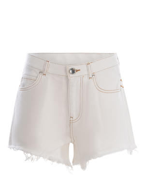 Shorts Pinko " Honey" realizzati in denim di colore Bianco. Vita alta. Cuciture a contrasto. Passanti per cintura. Cinque tasche. Chiusura con bottone e zip. Fondo con taglio vivo. Etichetta logo applicata sul retro. Ricamo a contrasto sul retro. Logo " Love Birds Diamond Cut" ricamato sulla tasca posteriore. Fodera 65% Poliestere, 35% Cotone 100% Cotone