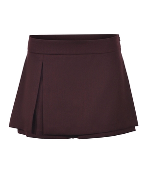 Shorts Pinko " Novalis" realizzati in misto lana stretch di colore Bordeaux. Designer effetto minigonna. Linea aderente. Chiusura con zip invisibile, laterale. 55% Lana, 28% Poliestere, 15% Viscosa, 2% Elastan