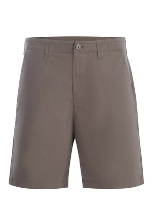 Shorts Stone Island realizzati in cotone stretch di colore Tortora. Passnti per cintura. Tasche america. Chiusura con zip e bottone. Tasche con patta sul retro. Patch logo applicato sulla tasca posteriore. 97% Cotone, 3% Elastan Made in Italy