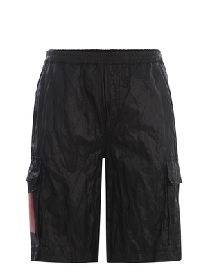 Shots 44 Label Group realizzato in viscosa di colore Nero. Effetto crespo. Elastico in vita. Tasche cargo con patta, laterali. Dettaglio porta card realizzato in PVC trasparente di colore Rosso. Tasca a filo con zip sul retro. Tasche applicate con patta sul retro. Lettering "44 Label Group" inciso tono su tono sulla tasca. 75% Viscosa, 14%PES, 8% Cotone, 3%MEMade in Italy