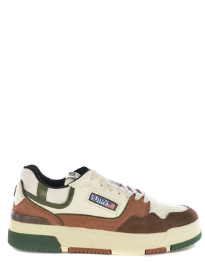 Sneakers Autry "CLC Low" realizzata in pelle di colore Off White. Inserti a contrasto di pelle scamosciata di colore Marrone. Dettagli di colore Verde Militare. Collarino imbottito. Punta tonda, traspirante. Logo a contrasto sulla linguetta. Stringata. Laccio tono su tono. Logo " Autry" applicato di lato. Logo sul retro. Soletta interna logata. Suola in gomma di colore Crema. Soletta rialzata di 2cm Suola 100% Gomma 100% Pelle
