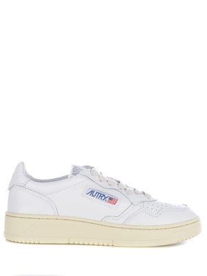 Sneakers Autry " Medalist Low" realizzata in pelle di colore Bianco. Collarino imbottito. Punta tonda, traspirante. Patch logo applicato sulla linguetta. Stringata. Laccio tono su tono. Logo " Autry" applicato di lato. Logo inciso tono su tono sul retro. Soletta interna logata. Fodera in pelle e spugna di cotone. Suola in gomma di colore Crema. Soletta in pelle logata, rialzata di 2cm Fodera: 40% Pelle Suina, 50% Spugna, 10% Nylon Suola 100% Gomma 100% Pelle