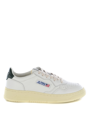 Sneakers Autry " Medalist Low" realizzata in pelle di colore Bianco. Collarino imbottito. Punta tonda, traspirante. Patch logo applicato sulla linguetta. Stringata. Laccio tono su tono. Logo " Autry" applicato di lato. Tallone a contrasto Verde Scuro. Logo inciso tono su tono sul retro. Soletta interna logata. Fodera in pelle e spugna di cotone. Suola in gomma di colore Crema. Soletta in pelle logata, rialzata di 2cm Suola 100% Gomma 100% Pelle