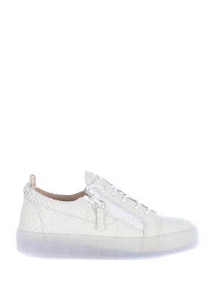 Sneakers Giuseppe Zanotti in pelle Pitonato Bianco. Punta tonda. Logo tono su tono sulla linguetta. Stringata. Chiusura con zip cerate. Suola in gomma Bianco semitrasparente. Suola 100% Gomma 100% Pelle