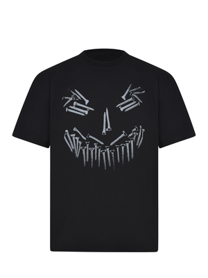 T-shirt 44 Label Group realizzata in cotone di colore Nero. Girocollo a costine. Maniche corte. Stampe sul davanti a contrasto. Maxi logo sul retro stampato a contrasto.100% cotone
