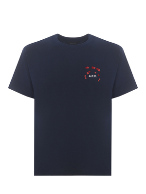 T-shirt A.P.C. realizzata in cotone di colore Blu. Girocollo a costine. Maniche corte. Giromanica leggermente sceso. Lettering logo "A.P.C." a contrasto Bianco, Cuori Rossi effetto velluto. Regular fit.100% Cotton