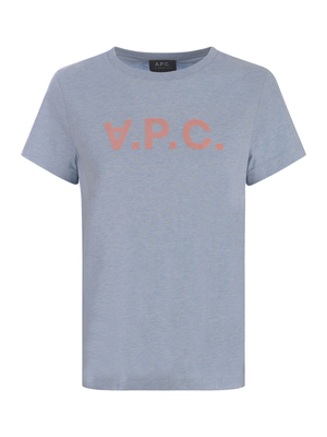 T-shirt A.P.C. in cotone di colore Celeste. Lettering logo "A.P.C." a contrasto Rosa davanti. Girocollo a costine. Maniche corte. Regular fit.100% Cotone Made in Turchia