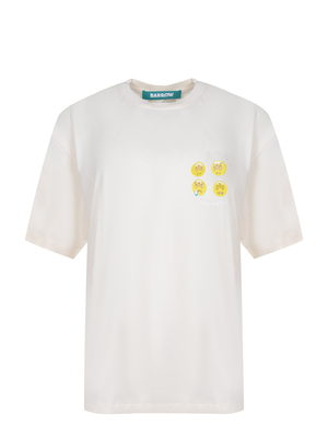 T-shirt Barrow realizzata in cotone di colore Crema. Girocollo a costine. Maniche corte. Stampe a contrasto sul petto. Maxi stampa e lettering logo sul retro con applicazini di strass e perline a contrasto.100% cotone