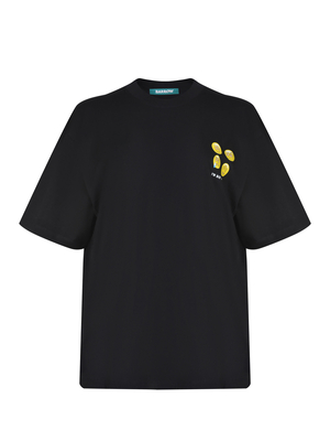 T-shirt Barrow realizzata in cotone di colore Nero. Girocollo a costine. Maniche corte. Stampe a contrasto sul petto. Maxi stampa e lettering logo sul retro con applicazini di strass e perline a contrasto.100% cotone