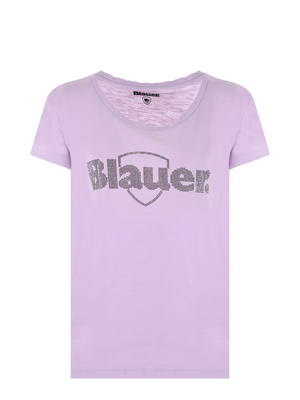 T-shirt Blauer in cotone Glicine effetto fiammato. Logo frontale in strass. Scollo rotondo rifinito a taglio vivo. Manica corta. Misura in foto XS100% cotone