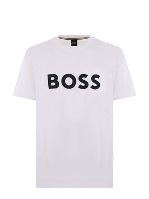 T-shirt Boss in cotone Bianco. Maxi logo frontale a contrasto. Girocollo. Manica corta. Misura in foto M100% cotone