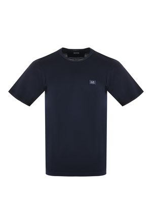 T-shirt C.P. Company in raso di cotone Blu scuro. Girocollo. Manica corta. Patch logo frontale. Misura in foto M100% cotone