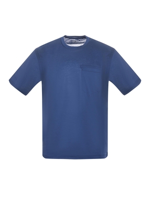 T-shirt C.P. Company in cotone Blu. Girocollo. Manica corta. Spacchetti al fondo. Taschino sul petto. Misura in foto M100% cotone