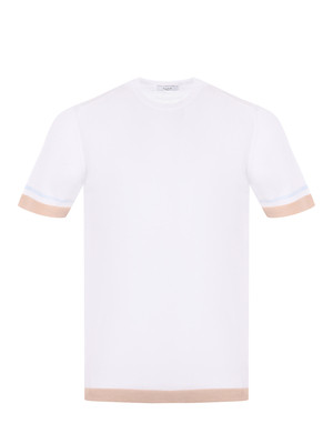 T-shirt Claq in filo di cotone Bianco latte. Girocollo a costine. Manica corta con profili a contrasto. Fondo a costine beige. Misura in foto 50100% cotone