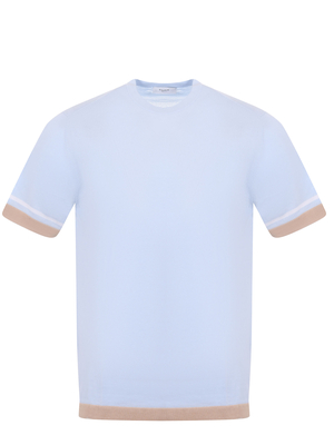 T-shirt Claq in filo di cotone Celeste. Girocollo a costine. Manica corta con profili a contrasto. Fondo a costine beige. Misura in foto 50100% cotone