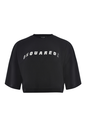 T-shirt crop Dsquared2 realizzato in jersey di cotone di colore Nero. Girocollo a costine. Manche corte. Giromanica sceso. Lettering logo "Dsquared2" a contrasto Argento.Over fit.100% CotoneMade in Italy