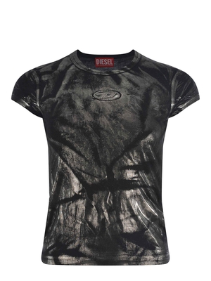 T-shirt Diesel "T-Angie-P1" realizzata in jersey stretch di colore Nero. Motivo laminato Argento all-over. Girocollo. Maniche corte. Logo "OvalD" intarsiato, dettaglio cut-out davanti. Slim fit.93%Modal 7%Elastan