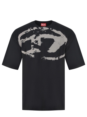 T-shirt Diesel "T-Boxt-N14" realizzata in jersey di cotone in colore Nero. Girocollo a costine. Maniche corte. Giromanica sceso. Logo "Oval-D" floccato a contrasto Off-White, davanti. Relaxed fit. Stampa Flock 100%Poliammide100% Cotone