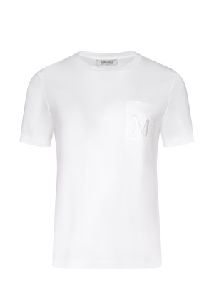 T-shirt 'S Max Mara " Madera" realizzata in cotone di colore Bianco. Taschino applicato sul petto e logo M Max Mara ricamato in tono. Girocollo. Maniche corta a giro. Fondo dritto.100% cotone Made in Italy