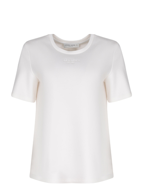 T-shirt 'S Max Mara " Tubo" realizzata in misto cotone tecnico di colore Avorio. Girocollo. Maniche corte. Lettering logo ricamato sul petto tono su tono.78% cotone 16% poliestere 6% elastene Made in Italy