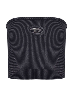 Top Diesel realizzato in misto cotone di colore Nero. Effetto sfumato. Elasticizzato a costine. Senza spalline. Logo cut-out sul davanti in metallo di colore Argentato.82% cotone 16% nylon 2% elastene Made in Italy