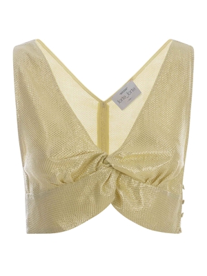 Top Forte Forte jacquard in misto cotone e viscosa di colore Oro, filo di lurex e trama tridimensionale. Chiusura con bottoncini tono su tono di lato.62% Cotone 22% Viscosa 16% Poliestere metallizzatoMade in Italy