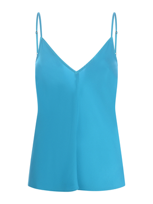 Top Forte Forte in raso in seta di colore Turchese. Spalline sottili, regolabili. Scollo a punta davanti, diritto sul retro. Linea fluida. 96% Seta, 4% Elastan Made in Italy