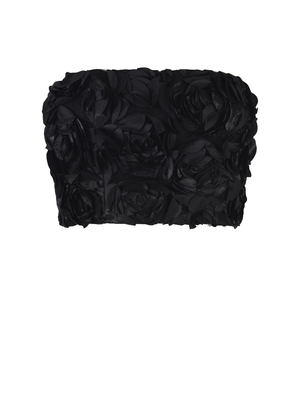 Top Rotate realizzato in raso di colore Nero. Motivo "Fiori" realizzati in 3D. Senza spalline. Spalline rimovibili. Scollo dritto. Designer crop. Chiusura con zip, sul retro. Foderato.Fodera 92%Poliestere, 8%Elastan100%Poliestere