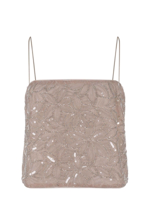 Top Rotate realizzato con pailettes di colore Crema. Spalline sottili. Senza maniche. Scollo dritto. Foderato. Designer crop. Fodera 100%Poliestere100%Poliestere