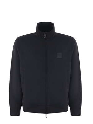 Tuta Emporio Armani in jersey Nero. Composta da felpa con collo altom, tasche inserite e chiusura con zip doppio cursore. Pantaloni con coulisse in vita, tasche a filo ed elastico al fondo. Misura in foto M52% poliestere, 40% modal, 8% elastene