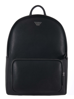 Zaino Emporio Armani in ecopelle stampa saffiano Nero. Manico in ecopelle. Spallacci imbottiti e regolabili. Schienale in nylon. Tasca frontale con zip. Scomparto principale chiuso con zip. Tasche interne. Interno foderato. Logo frontale "eagle" in metallo. Misure: altezza 45 cm, larghezza 33 cm, profondità 20 cm 100% Poliestere